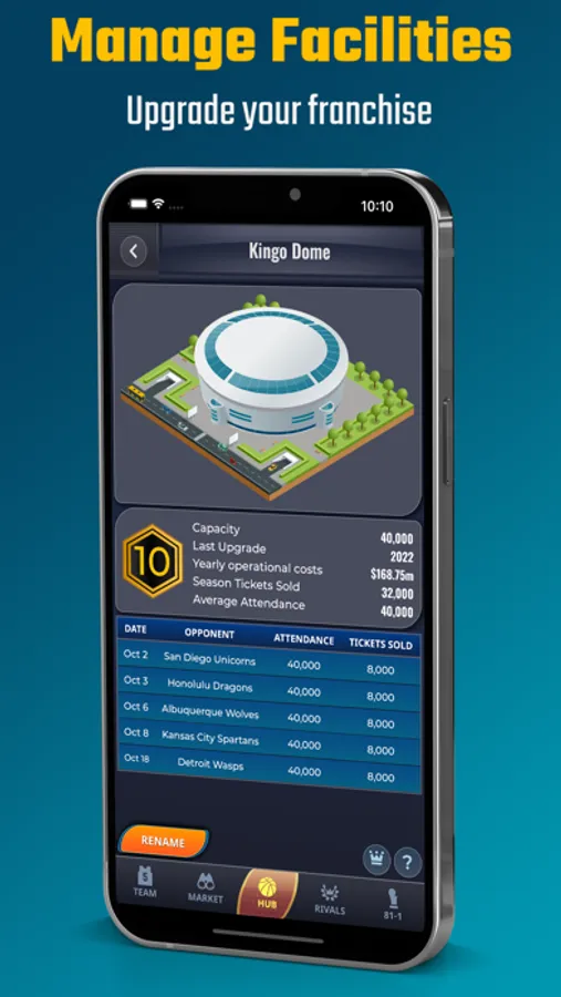 - Manage the upgrades of 8 different facilities including arena, gym and even medical facilities.