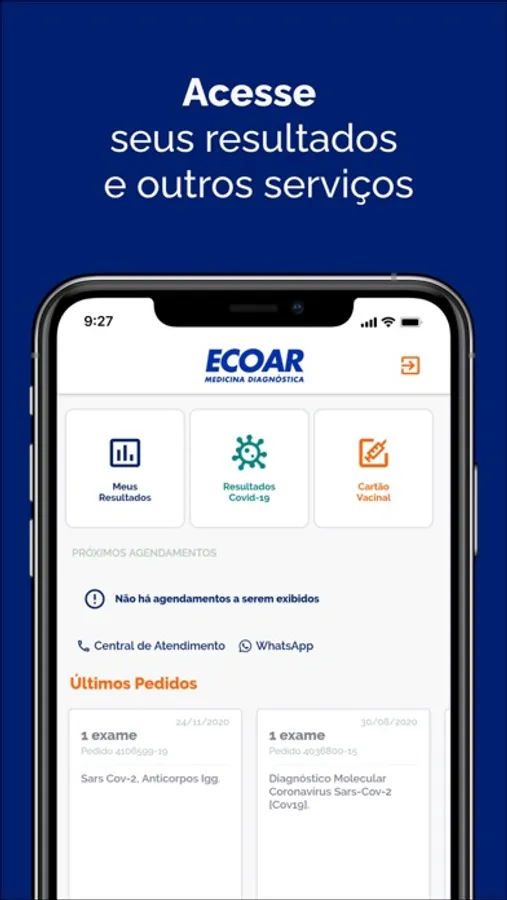 Nosso aplicativo oferece para os clientes, consulta aos seus resultados, além de todas as informações sobre exames, produtos e serviços. Possui também funcionalidades exclusivas, como alertas de quando seus resultados estiverem liberados. E agora no Ecoar, além de exames de imagem, você pode também realizar seus exames de análises clínicas.
