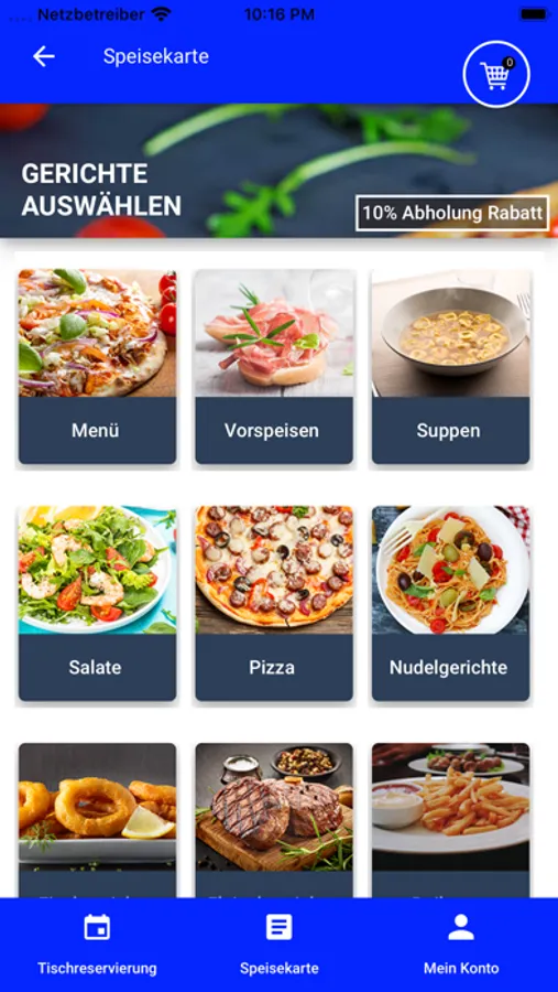 Salat, Pizza, Pasta, Nudelgerichte, Fischgerichte, Fleischgerichte, Beilagen und viel mehr!