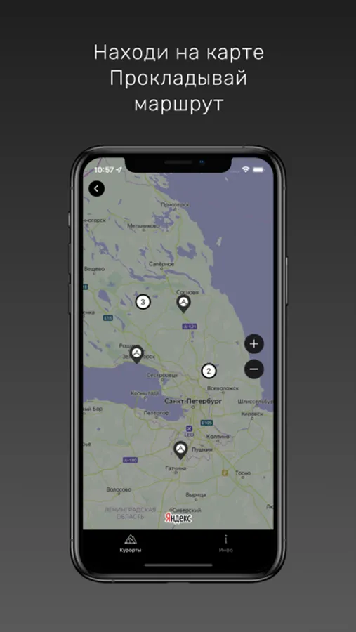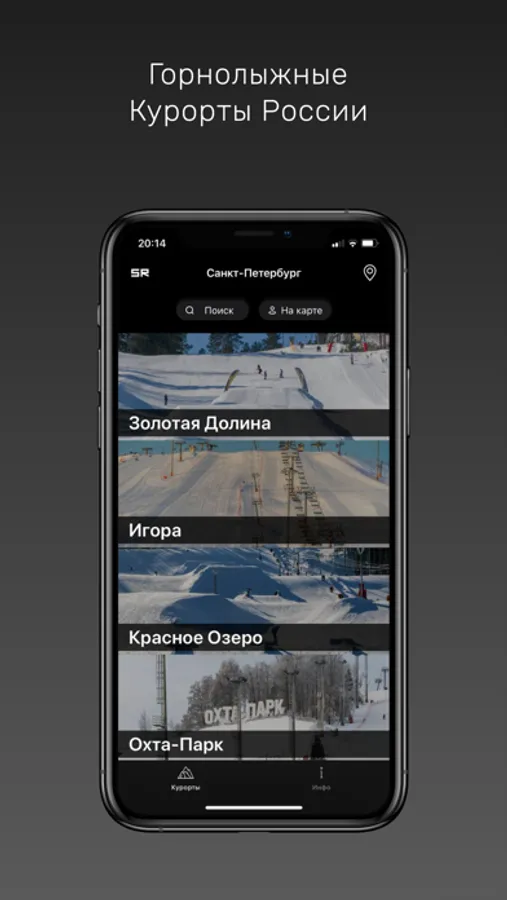 В приложении собрана вся актуальная информация о горнолыжных курортах России.