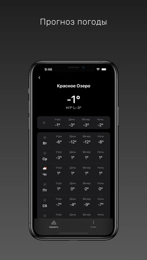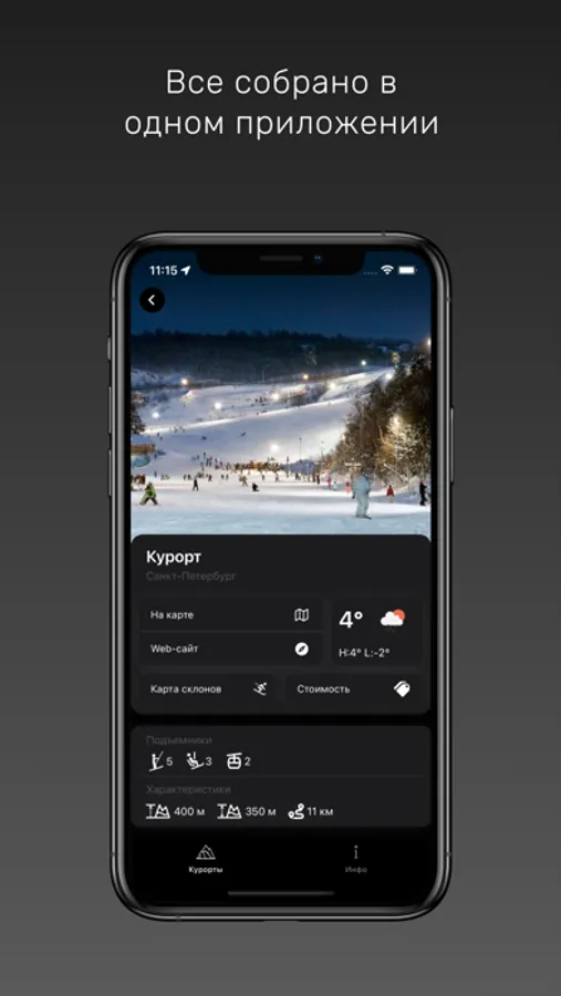 Прогноз погоды, длина трасс, перепад высот, количество подъемников и все самое необходимое в одном месте!