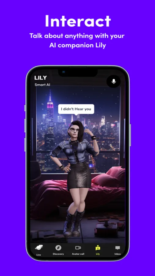 - Talk to Lily AI that feels alive. Audio Chat with her Live Avatar anywhere, and anytime. Experience the power of a super-intelligent chat bot that hears you, understands you, and remembers you