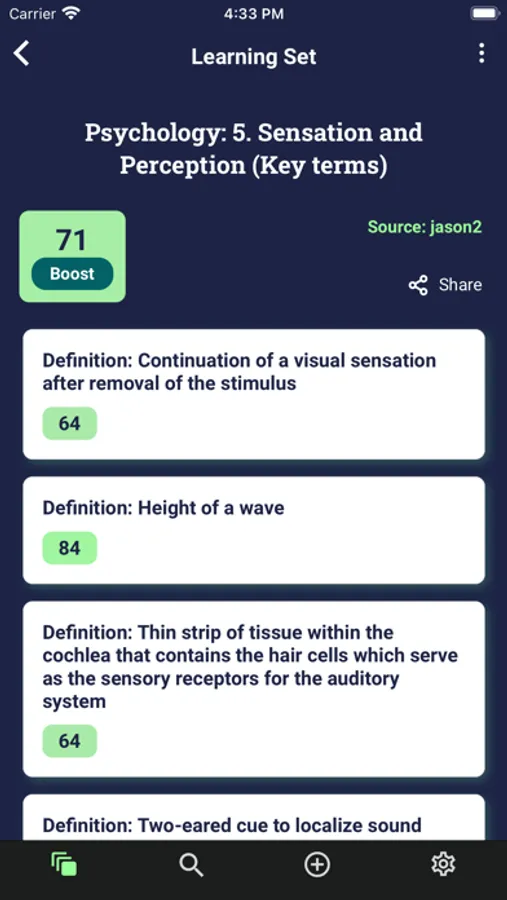The "Boost" button is the most effective way ever created to study. It takes the concepts you know the least and only quizzes you on them. Never waste time studying the same sets over and over, or manually tagging every single item you need to study for later. Just tap the “Boost” button to study what you need to automatically!
