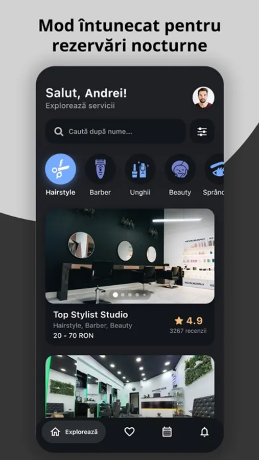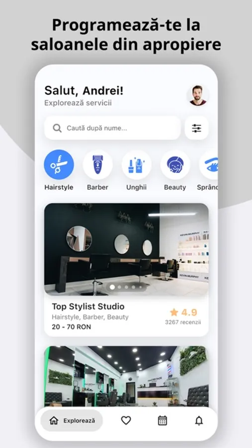 - Filtrează după prețuri și locație, alege salonul și te programezi direct in calendarul live al profesionistului.