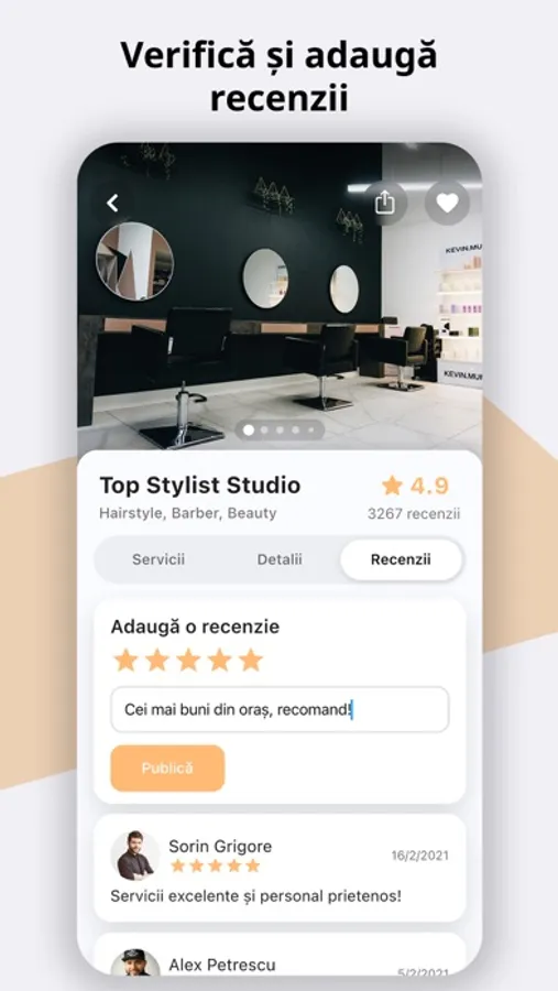 - Citește recenzii autentice și de încredere de la clienții care și-au descris experiența din salon.