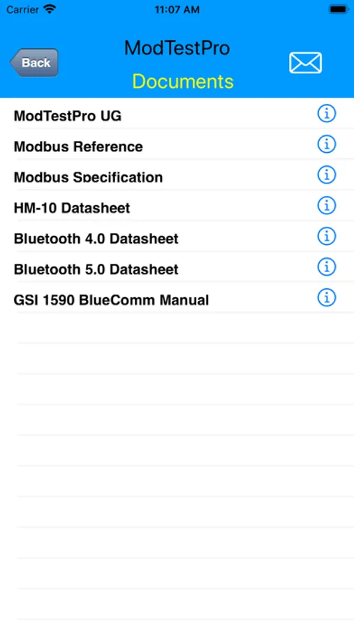 The Comm Setup view allows a number of addressing, timing, and communication mode parameters to be configured. Besides a comprehensive user guide, the app also has extensive built-in help. Tap on any yellow label or info button for a description of that parameter.