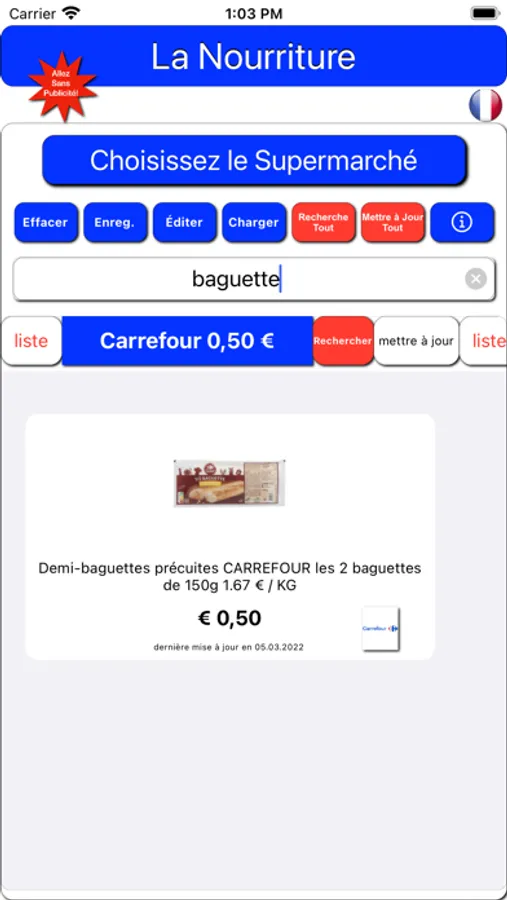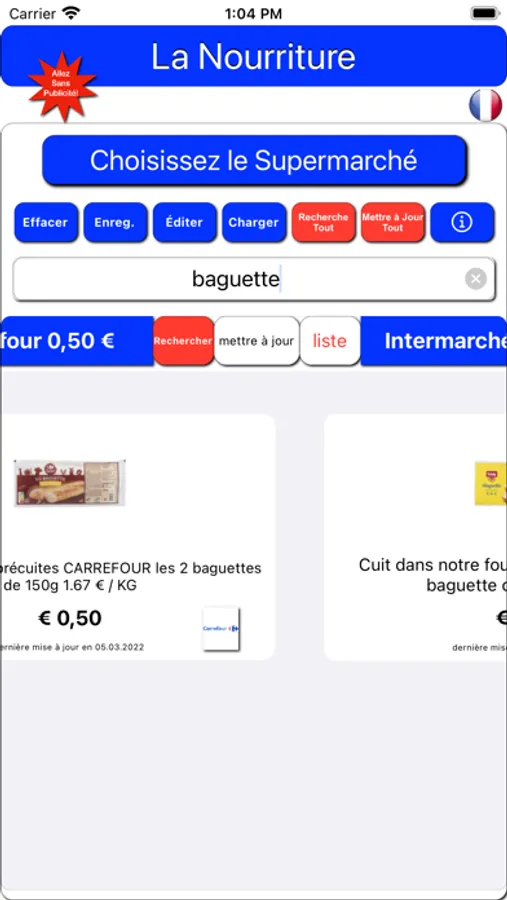 Si vous voulez avoir votre meilleure option en termes de prix pour vos courses, vous le pouvez maintenant. Avec une bonne connexion Internet, il vous permet de rechercher des articles dans jusqu'à 8 supermarchés différents et de comparer les prix. En outre, vous pouvez enregistrer une liste de courses pour chaque supermarché et obtenir la mise à jour des prix quand vous le souhaitez. Ou, si vous souhaitez simplement comparer le meilleur prix pour votre déjeuner, cela correspond également à l'objectif. J'espère que vous apprécierez comme moi ?Parfois, il peut être nécessaire d'effectuer à nouveau la recherche ou la mise à jour.