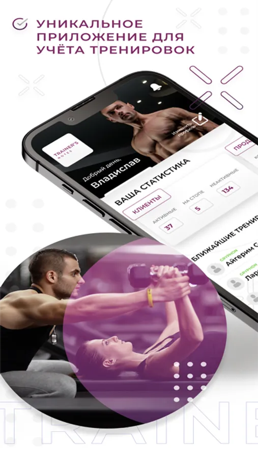 •Ближайшие тренировки, а также заканчивающиеся абонементы клиентов.