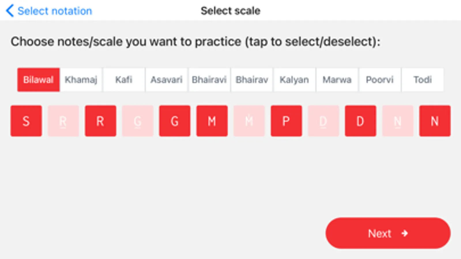 This app gives you the ability to create patterns in both Indian Classical and Western notation systems. Follow these three simple steps to start creating alankaras in seconds!