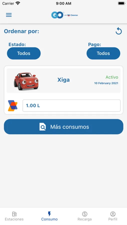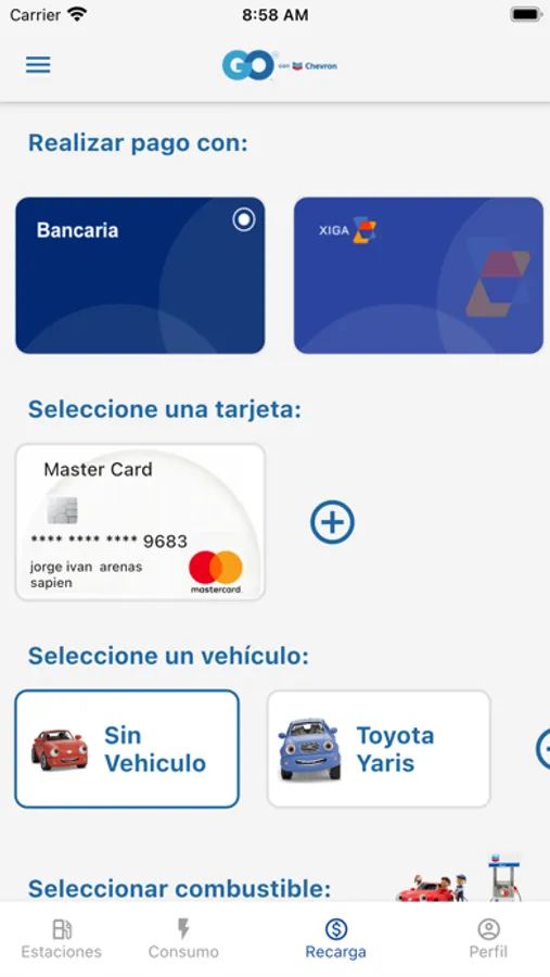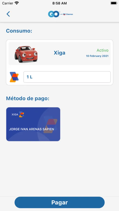 Con la aplicación Chevron GO puedes registrar una tarjeta bancaria, una cuenta de monedero XIGA o depositar efectivo a tu cuenta EFT Cash, para poder comprar, administrar y gestionar tus consumos de combustible.
