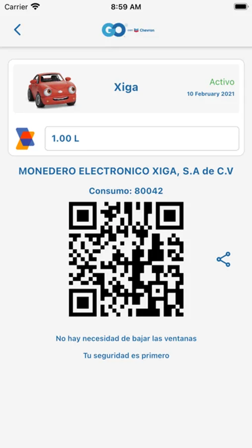 Configura una carga de combustible y obtén un código QR con la referencia de tu consumo, el cual podrás utilizar en las estaciones de servicio y reducir tu tiempo en la estación. Puedes enviar códigos QR a tus amigos o familiares que necesiten una carga en tiempo real.