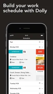 2.Request & Get Scheduled - Request Dollys to build your schedule. Connect with your customer to provide a great experience. If the Dolly is a two person job, meet the other Helper.