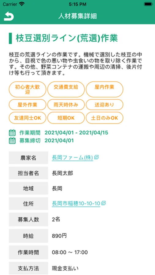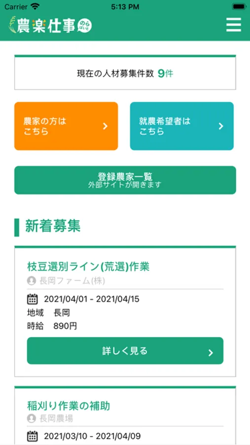 長岡市の農家さんと農作業のお手伝いをしたい人を繋ぐ無料のアプリです。