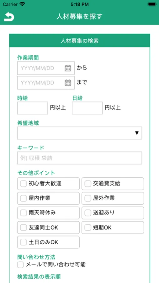 1.掲載されている募集情報から地域や時給、期間などの条件で検索をかけます。