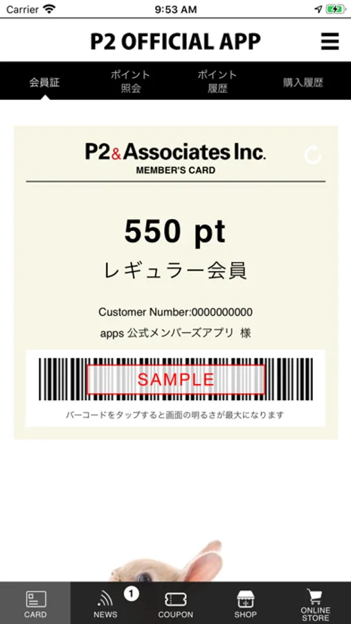 ・会員証バーコード(店頭でご購入の際にレジでご提示ください)