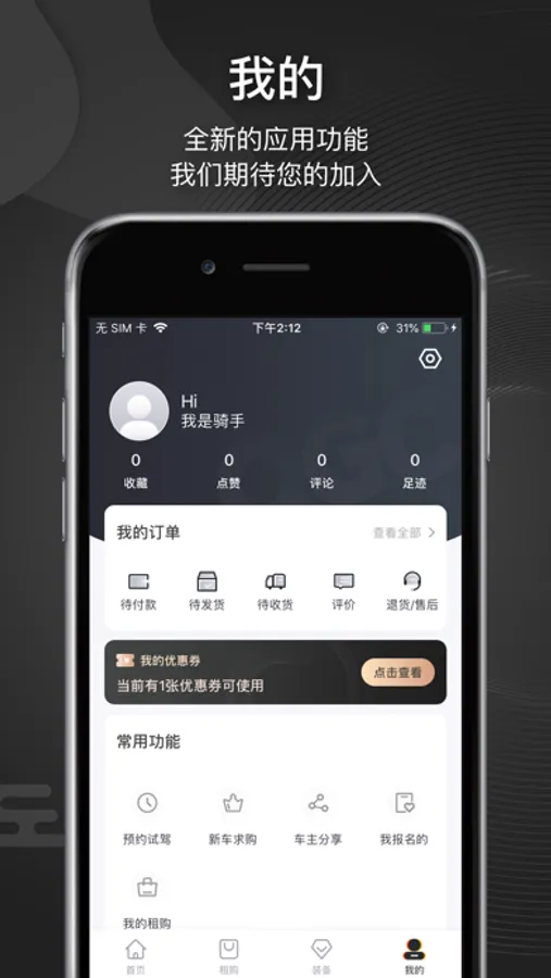 骑个车是一款面向摩托车使用者和爱好者开放的社交电商产品。提供车辆租赁、装备购买、安驾培训等功能服务。
