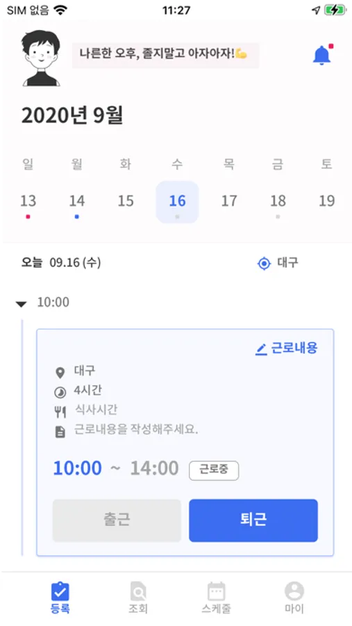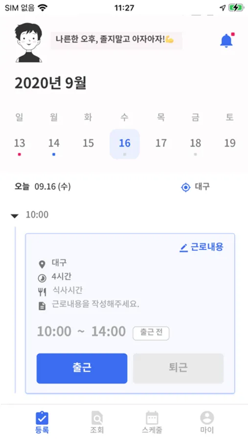 - 푸쉬기능 : 출·퇴근 처리 전 출근부 앱에서 알림 기능 추가