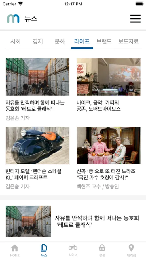 ∘ 모터사이클, 악세사리 부품 등 관련 브랜드의 정보를 제공