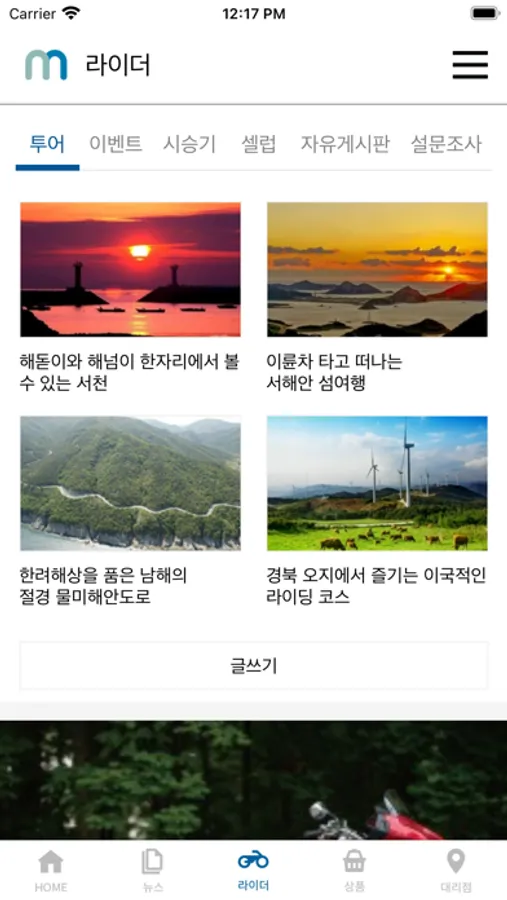 어플리케이션을 통해 M스토리만의 다양한 정보를 뉴스 창에서 확인하고, 문화, 커뮤니티를 통한 실시간 소통을 하실 수 있습니다.