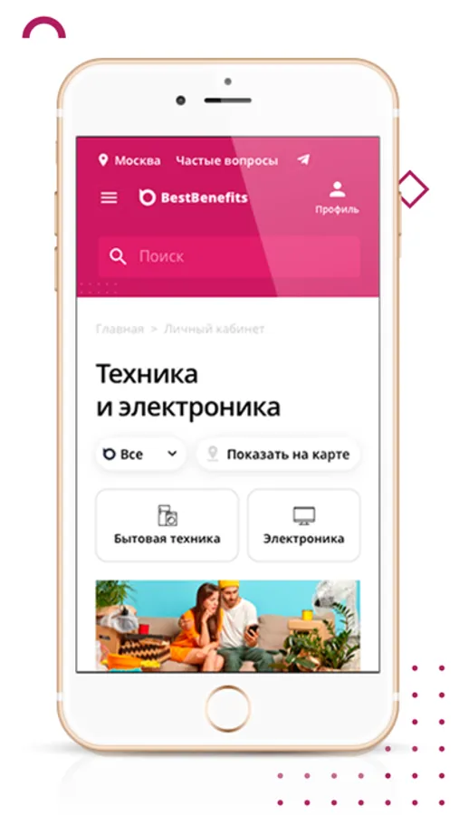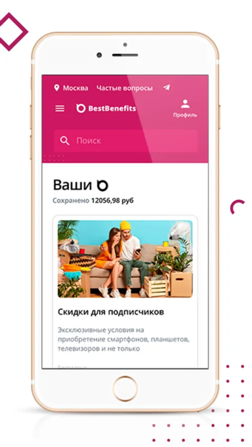 Сервис подписки на корпоративные скидки для сотрудников компаний, который даёт реальные скидки на покупку товаров, онлайн сервисов, недвижимости, путешествий, техники и электроники, обучения, спорта, отдыха, ресторанов и доставки.