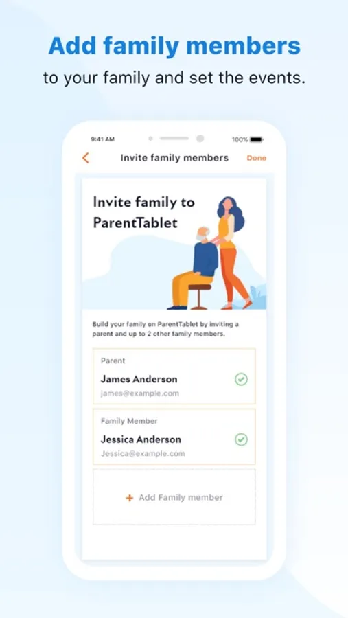 Put family birthdays, anniversaries, and other memorable days on the calendar to remind parents or grandparents. From daily interactions to special occasions, never miss a moment with ParentTablet.