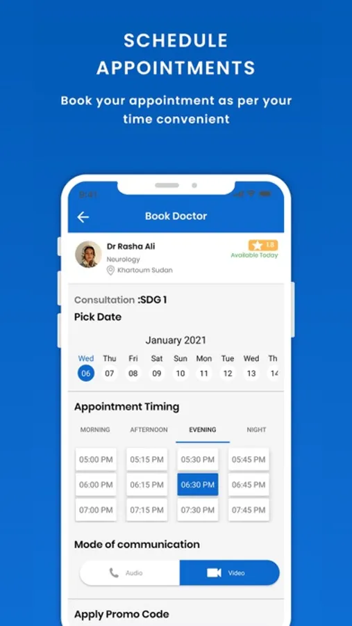 This is our innovative solution to collect best doctors at your fingertip. Our international developers worked sleeplessly to deliver this state-of-the-art mobile application available in play store and apple store both for doctors and patients. If you are a patient, you will be able to search for doctors in different specialties and book video Or Audio appointments. All you need is a good network connection and you are set. Our App does not store any medical information on our servers, and all of these are stored in your phone, so you do not have to worry about breach of your privacy. You can review your appointment and leave your doctor a thank you note or may be a remark to improve things a little. You can view doctors by their specialty, ratings by different patients or just search by name.
