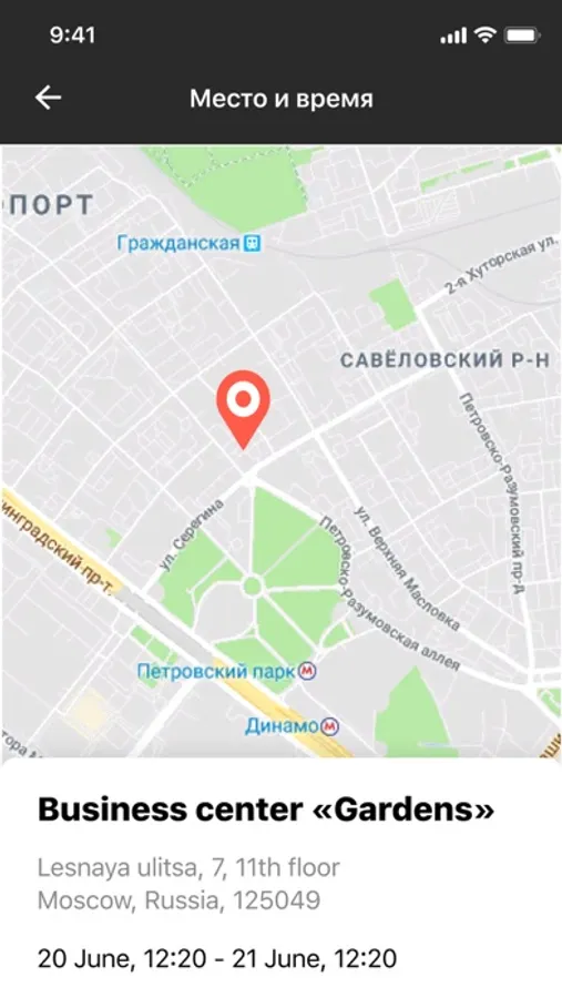 • Просмотреть подробную информацию о событии, включая карты и схему площадки