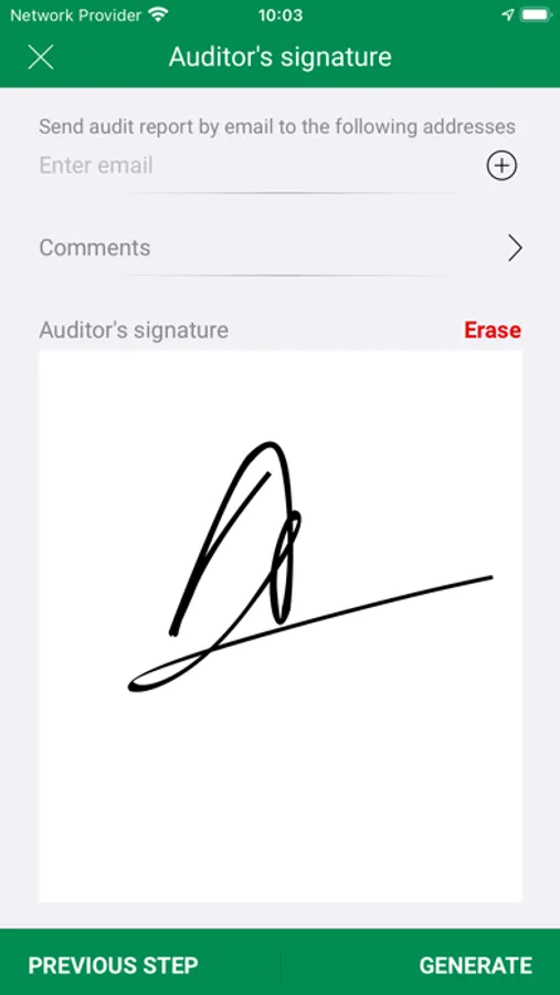The auditor will select each item to be audited individually and will follow the instruction per each item. The auditor will be able to select the precise classification proposed on the multiple-choice answers, add comments, take pictures in the application through his mobile phone and add files. The tool will give a geo-localization where the work has been done. At the end of the audit a signature by the auditor and the customer will be done digitally and create an instant reporting file.