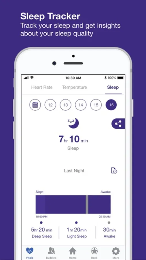 Sleep duration and quality tracked automatically.
