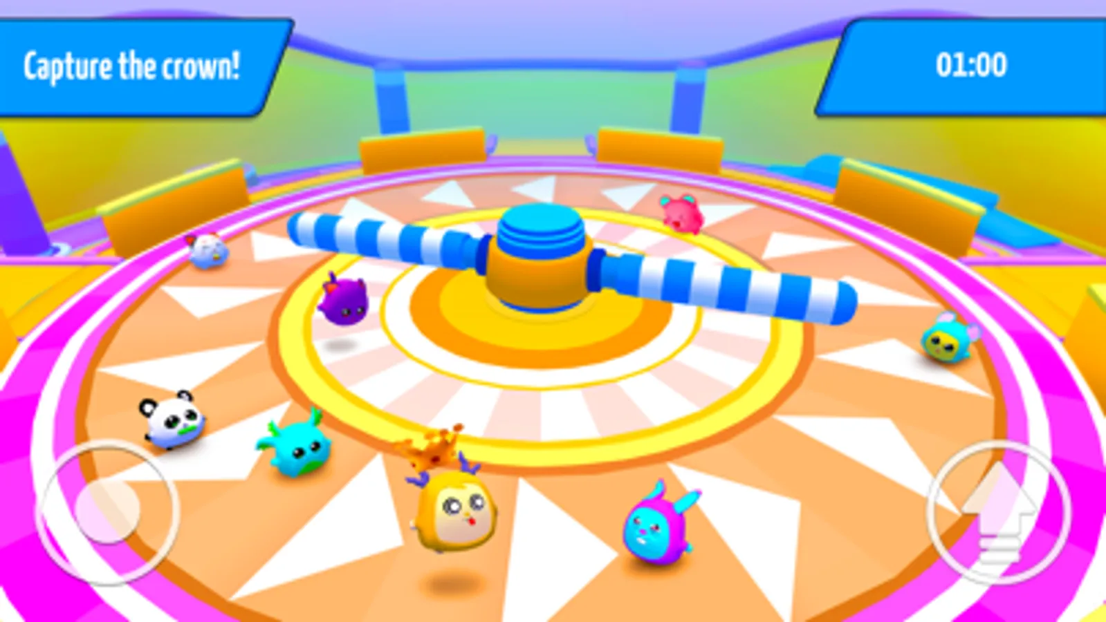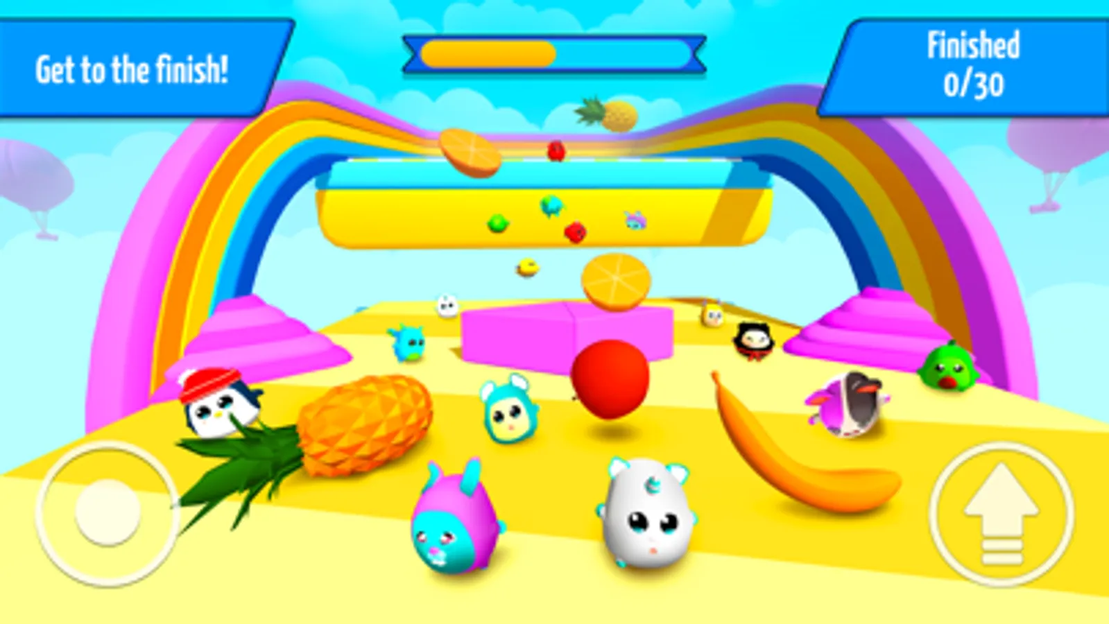 Your goal is to stay as long as you can. Pass the obstacle course and reach the end of this insane coliseum filled with fun! Each round is unique, and new trials will be harder than previous ones. You'll need all your skills to get the victory! Upgrade your skills and win!