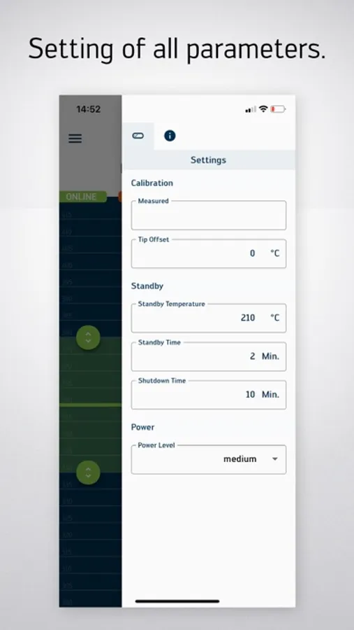 If the i-CON TRACE is to be operated like a conventional soldering station, the smartphone/tablet replaces the built-in display and the temperature is shown on a smartphone or tablet, as are familiar controls for temperature setting, etc..
