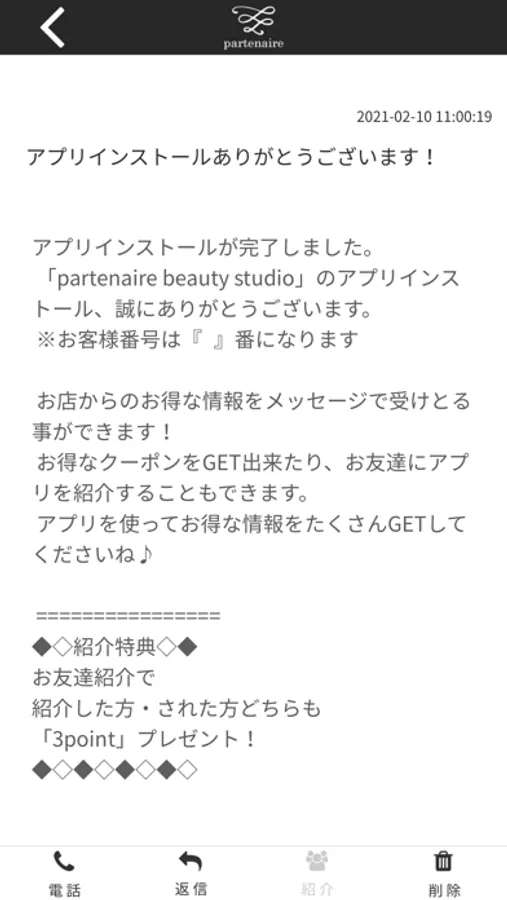 partenaireのアプリをSNSを通じてお友達に紹介する事ができます。
