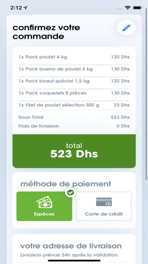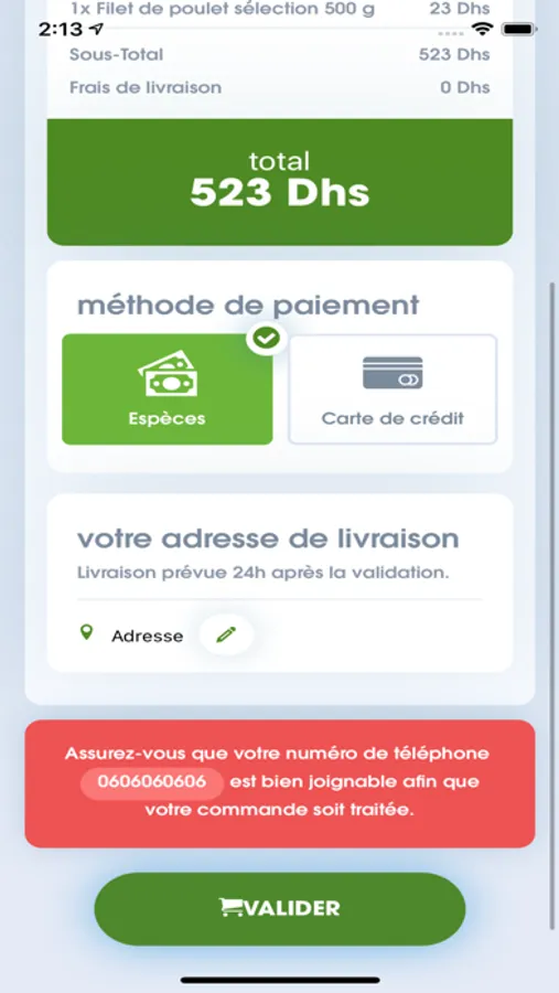 Avec l’application Koutoubia livraison, remplissez votre panier et renseignez votre adresse pour vous faire livrer dans les 24 heures, 7 jours sur 7.