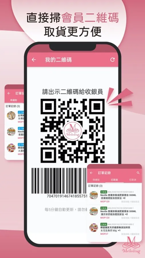 到店掃描手機APP內的會員二維碼便可輕鬆取貨。