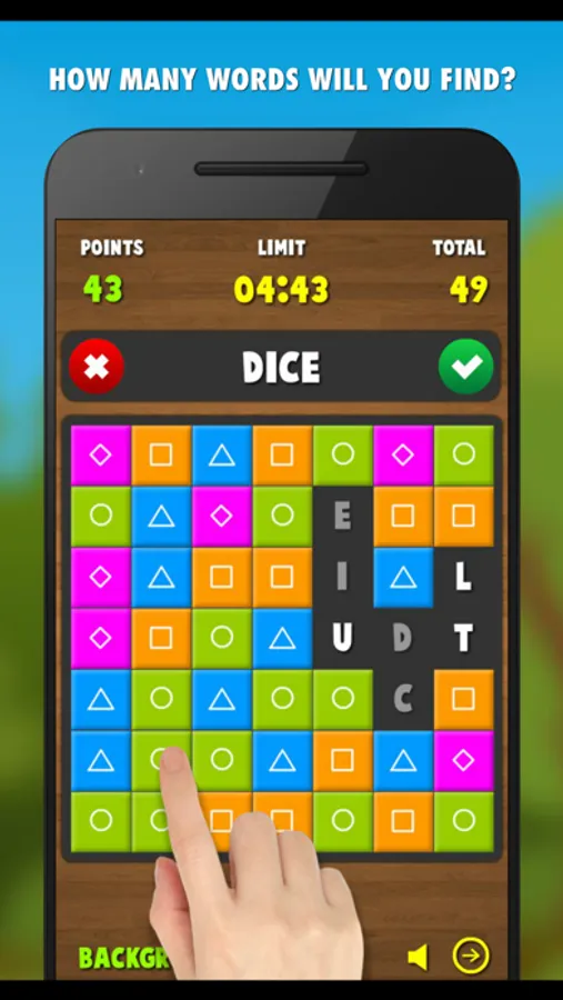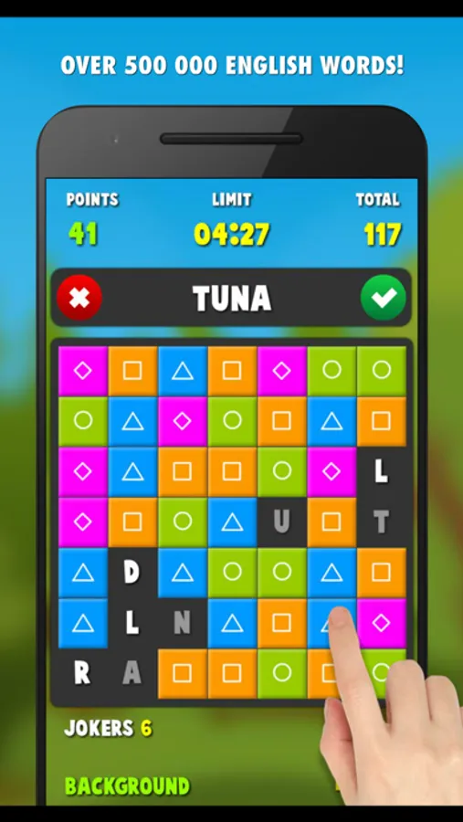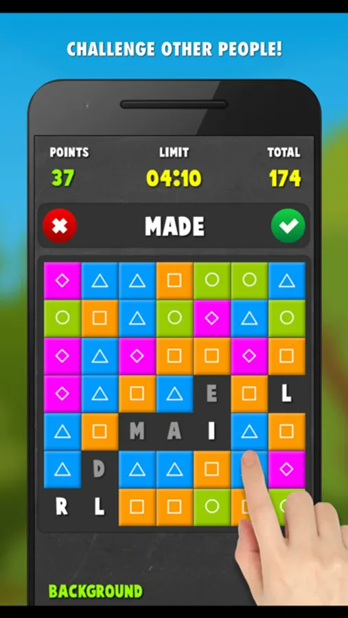 3. If the word exists there will be shown a green tick, tap it to submit your word! Longer words you create, better score you get!