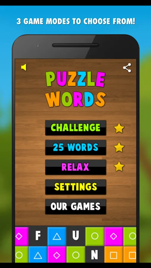 Puzzle Words is a combination of 2 game genres - a block collapsing puzzle game in which you must remove a group of the same symbols and a word search game in which you must create as many words as you can from provided letters!