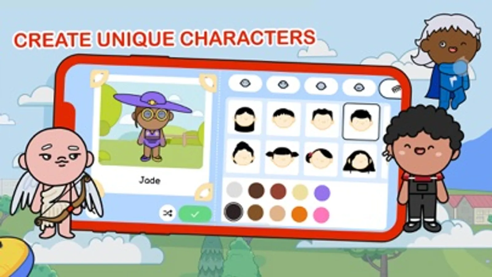 Create characters and breathe life into them with unrivaled body features, a combination of unique dresses, and any personalities and tempers you want. Build a family, gang of friends, rivals, or maybe put your imagination into creating one-of-a-kind friendly supervillain to rule them all!