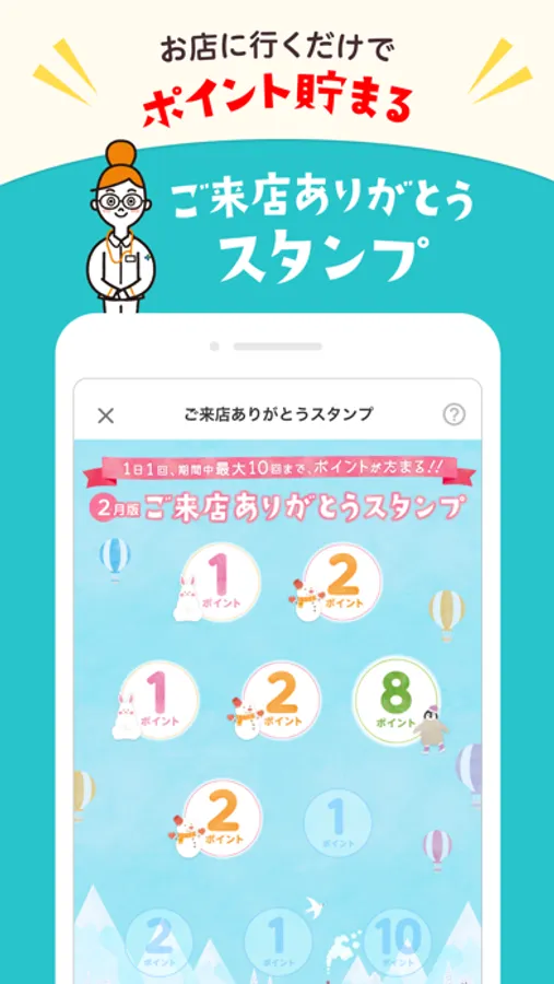 ・店舗に行くともらえるポイントいっぱい