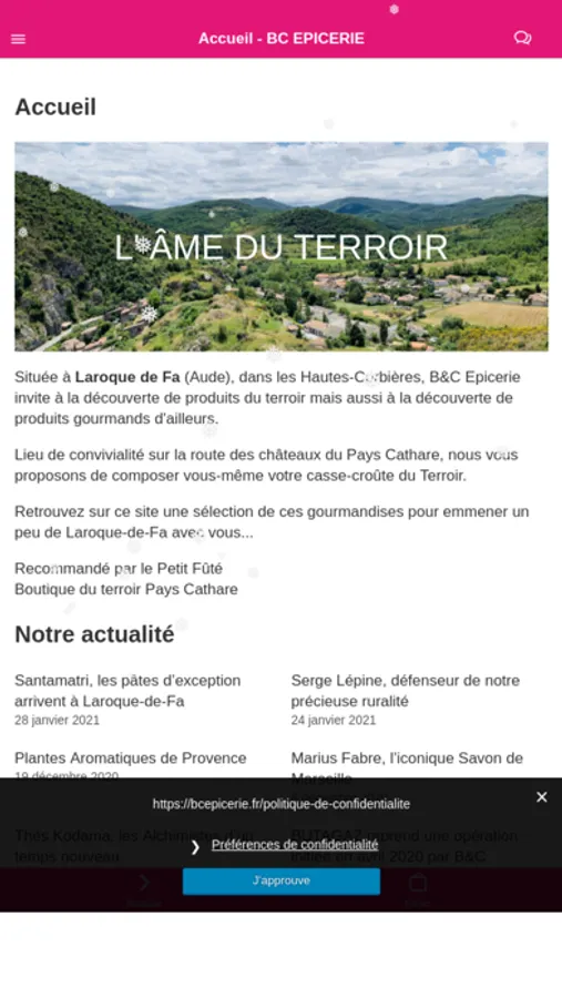 Bienvenue sur l'application de l'épicerie de Laroque-de-Fa !