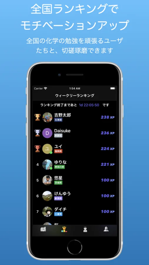 <全国ランキングで、全国の化学学習ユーザと切磋琢磨しよう>
