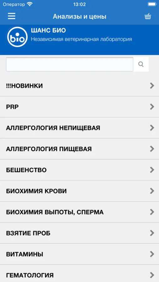 Каталог актуальных лабораторных исследований для животных в удобном формате мобильного приложения: