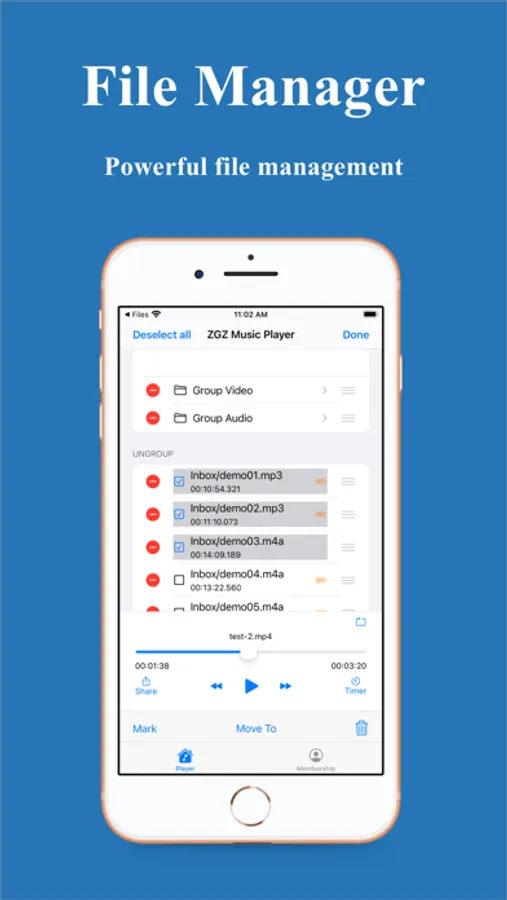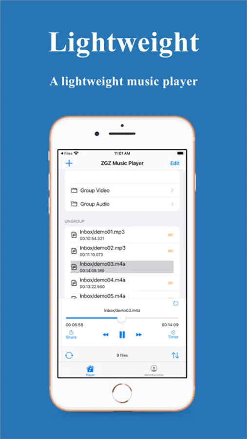 The biggest feature of ZGZ Music Player is powerful file management. It supports file sorting, file grouping, automatic stop and multiple playing modes.