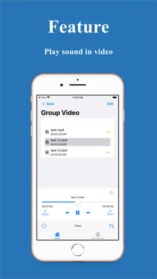 • Supports playing sound in video file formats including MP4, MOV, AVI, WMV, 3GP, MKV, ASF, SWF, AVS, RM, RMVB and WEBM.
