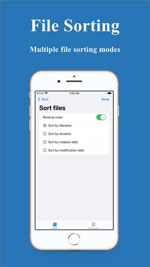 • Multiple file sorting modes. You can sort files by file name, audio duration, creation time and modification time.