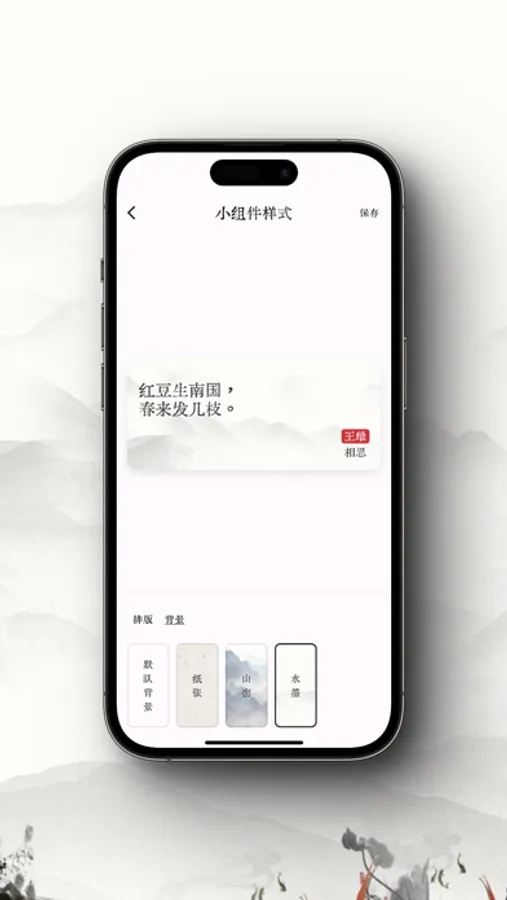 你可以通过右上角菜单保存诗词,用来分享给朋友,或者作为壁纸,让你的手机更加个性化,更具有自己的风格。你也可以把它们收藏在自己的空间里,随时欣赏,回味那些经典的诗句,体会不同的滋味。