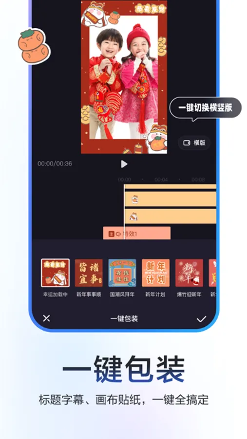 【一键包装】封面、标题、字幕、遮罩,一键完成,还可以随心转换横竖屏。