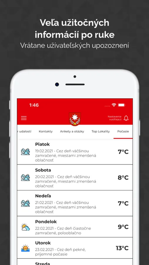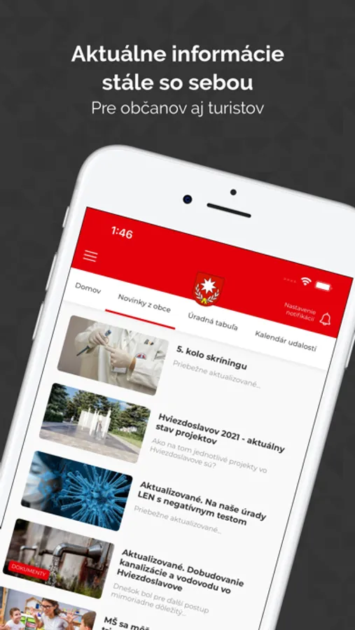 Mobilná aplikácia obce Hviezdoslavov. V aplikácii nájdete aktuálne informácie z diania v obce, kalendár, dôležité kontakty aj top lokality. Môžete si nastaviť upozornenia na rôzne udalosti, od noviniek, cez udalosti kalendára až po denné sumáre. Obec Vám v prípade kritickej situácie (napr. povodne) môže poslať upozornenie priamo do aplikácie.