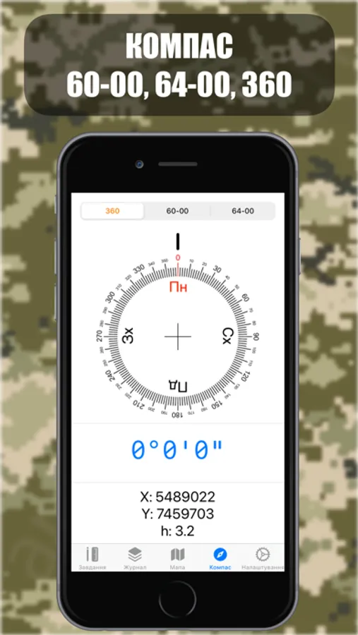 - Інтерактивний компас з підтримкою кутів 360 градусів, 60-00 та 64-00