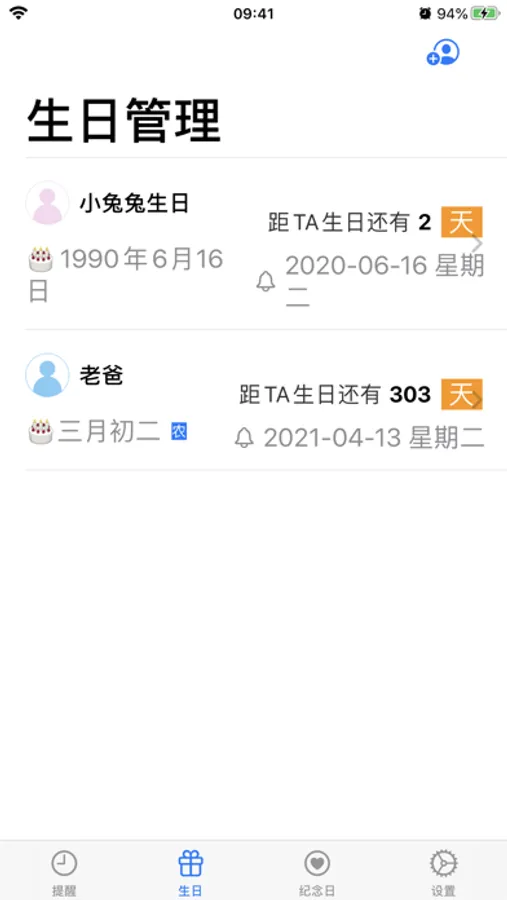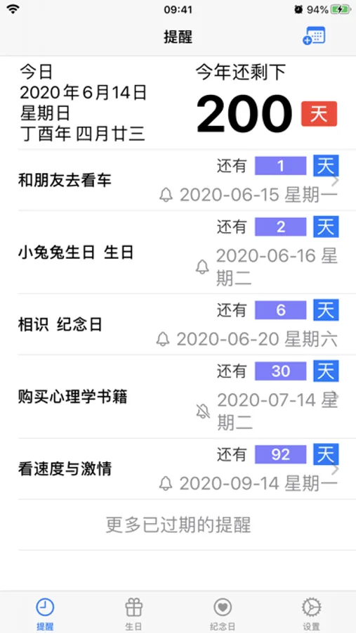 「提醒日 · Dates Minder」是一个支持随时记录重要事件、生日和纪念日的轻量工具,它可以在半个月前、1天前、当天通过通知提醒你重要的日子将要来临。