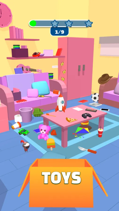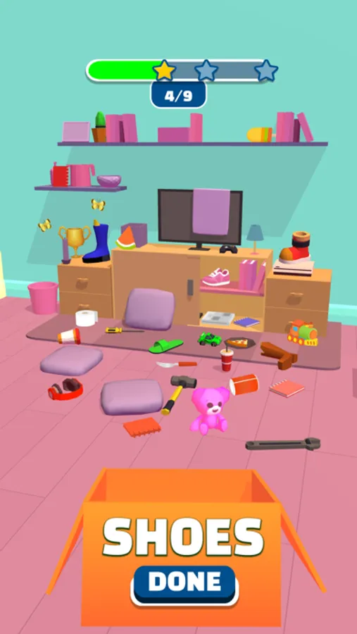 Search for the correct items in this big mess! They may be hiding behind other objects, around the corner or even in the closet. The more you can find, the bigger your reward!